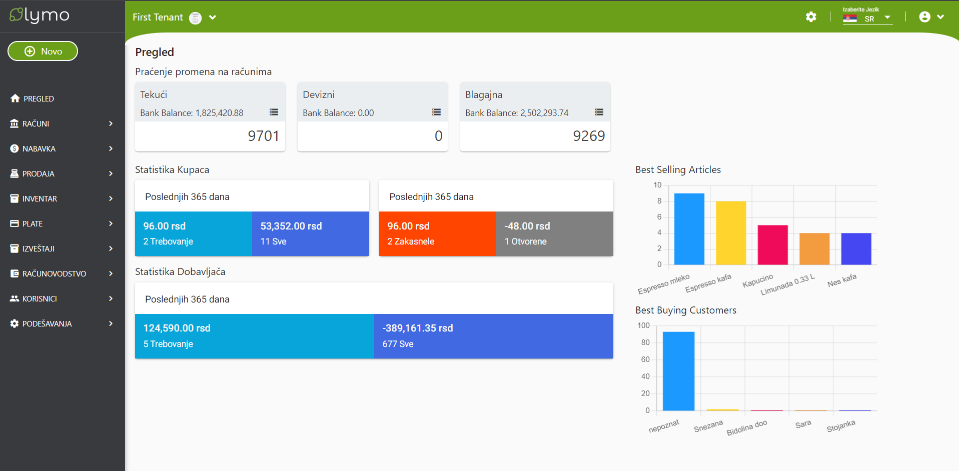 Grafički prikaz najvažnijih elementa poslovanja vam na lak i efikasan način sumira najvažnije elemente vašeg poslovanja. Poređenje sa prethodnim periodom vam omogućava da uporedite trenutne rezultate sa rezultatima iz prošlosti.